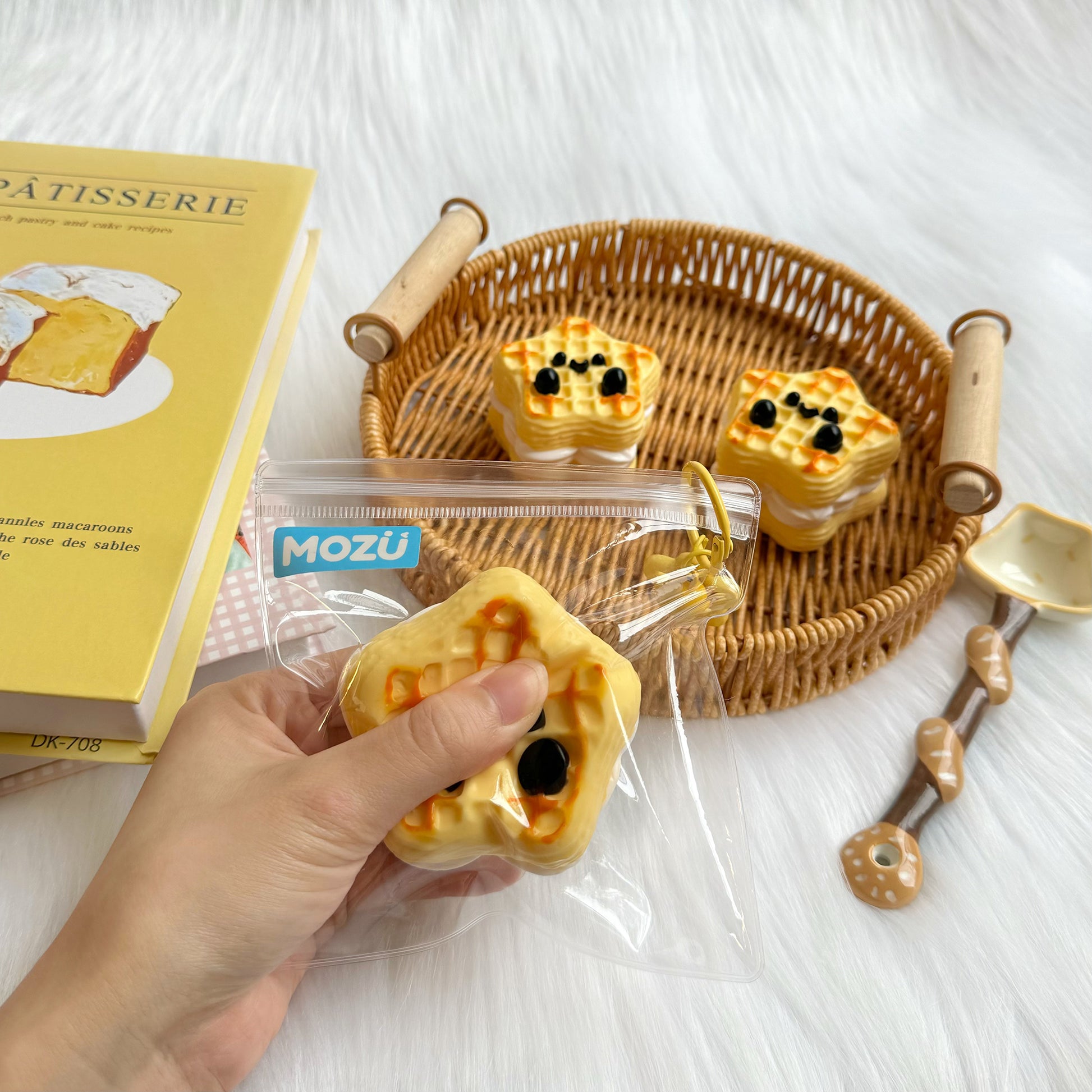Adorable star design - Unique star-shaped waffle with a cheerful expression that stands out from ordinary squishies. 🤩🤤